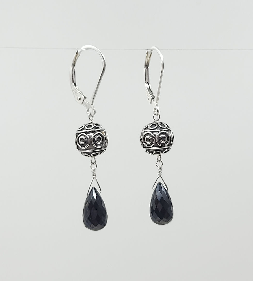 Earrings with rhodonite in quartz dangles on sterling silver lever backs